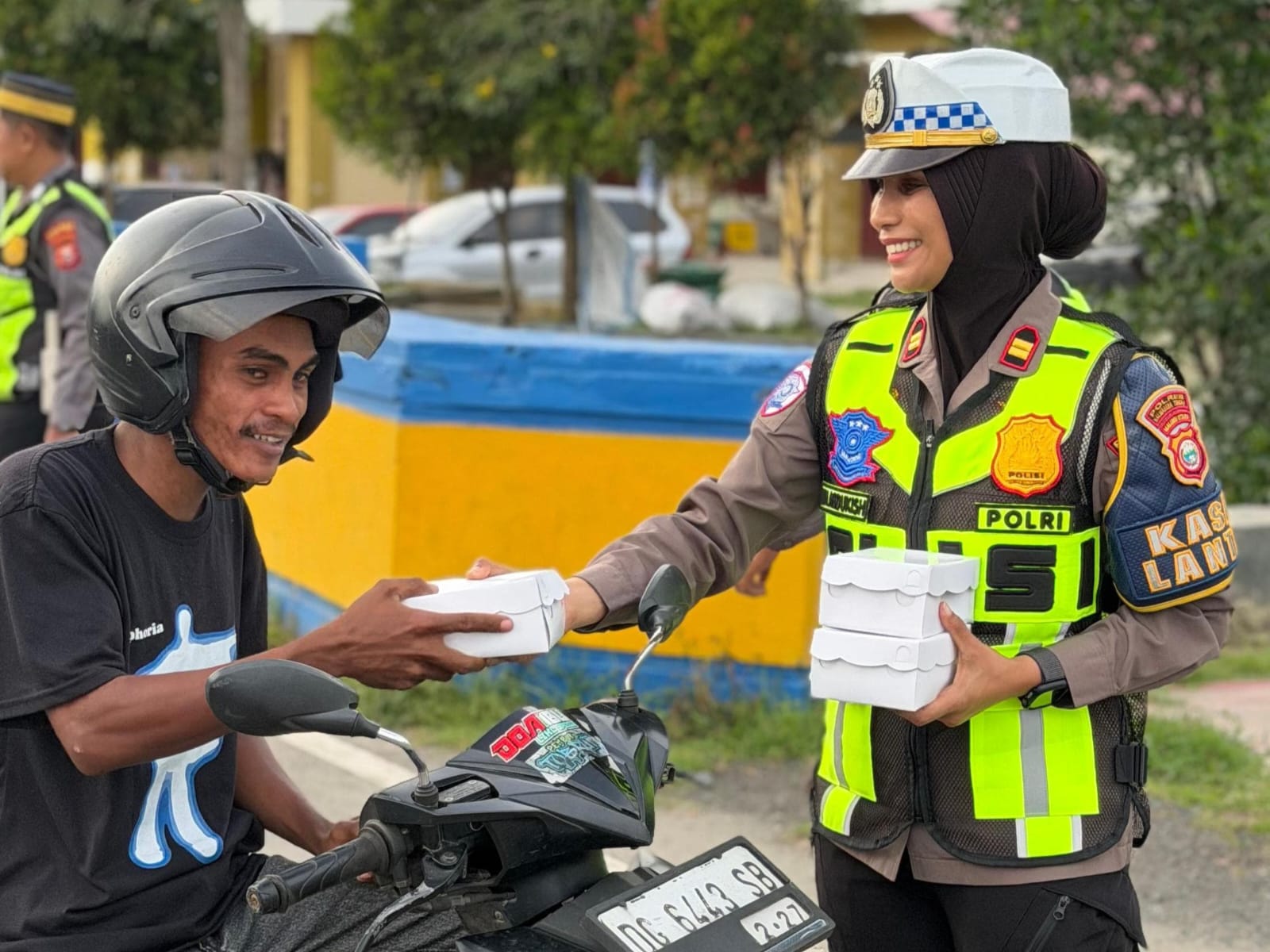 KORLANTAS POLRI, Halmahera – Satuan Lalu Lintas (Satlantas) Polres Halmahera Tengah membagikan takjil gratis untuk pengendara roda dua yang melintas di wilayah hukum Polres Halmahera Tengah menjelang waktu berbuka puasa, pada Kamis (19/2).