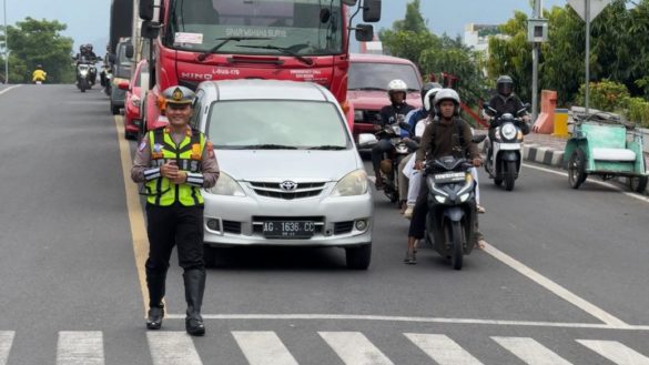 Petugas melakukan pemantauan langsung di setiap sudut persimpangan untuk memastikan kepatuhan pengemudi terhadap rambu lalu lintas dan marka jalan.