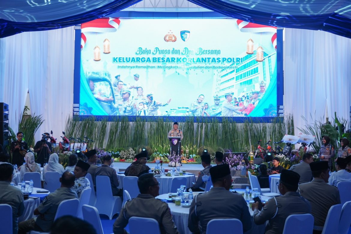 KORLANTAS POLRI, Jakarta – Kepala Korps Lalu Lintas (Kakorlantas) Polri, Irjen Pol Agus Suryonugroho, menghadiri acara buka puasa bersama keluarga besar Korlantas Polri dengan tema “Indahnya Ramadhan : Meningkatkan Kepedulian dan Berbagilah”. Acara yang berlangsung sederhana namun penuh makna ini bertujuan untuk mempererat tali silaturahmi serta berbagi kebahagiaan di bulan Ramadhan.