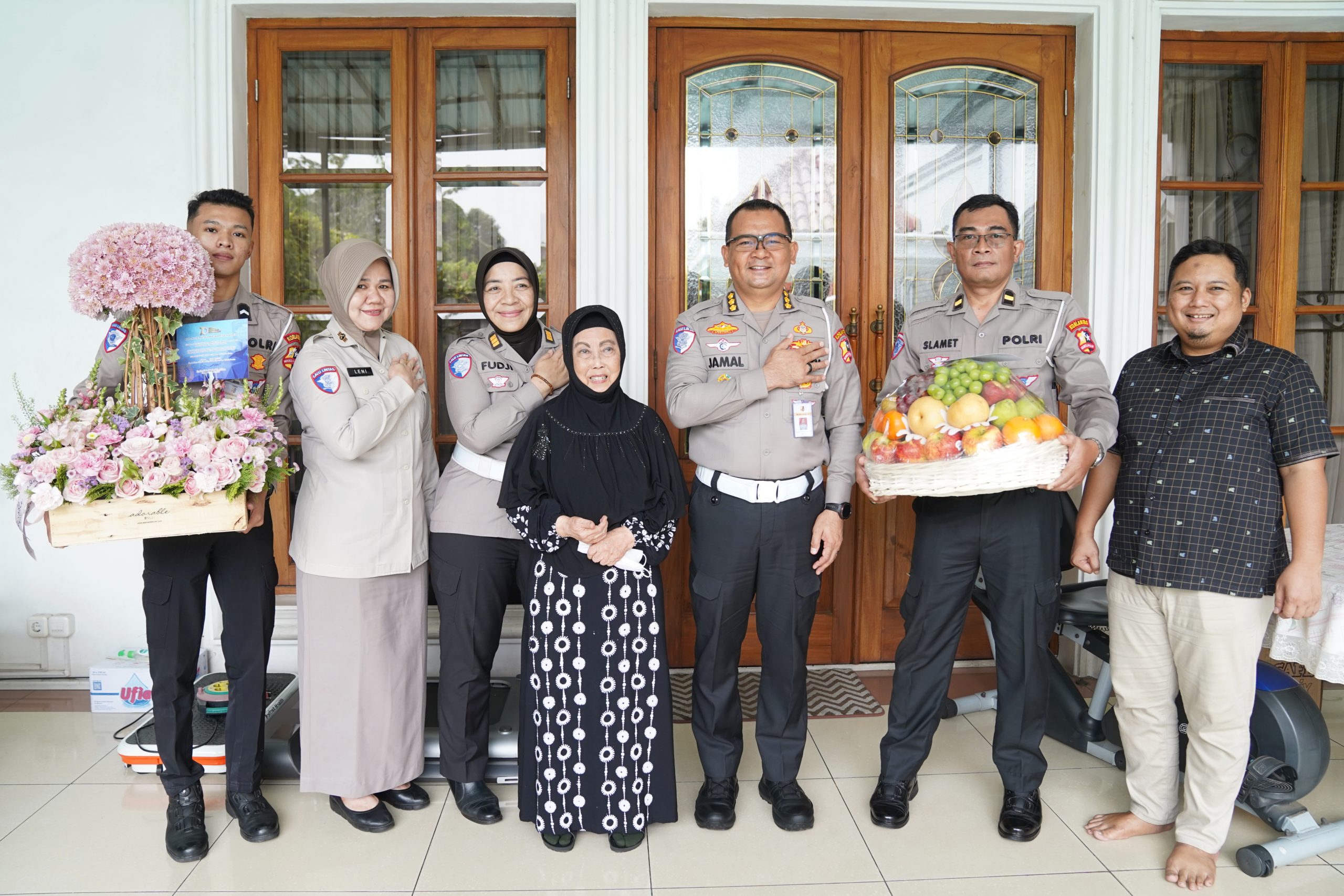 “Saya ucapkan terima kasih banyak atas kehadiran dari tim Korlantas di rumah saya ini saya adalah bagian dari keluarga Korlantas karena alhamdulillah bapak atau suami saya dulu juga pernah dinas di Korlantas,” ungkap Atim Sri Rahayu.