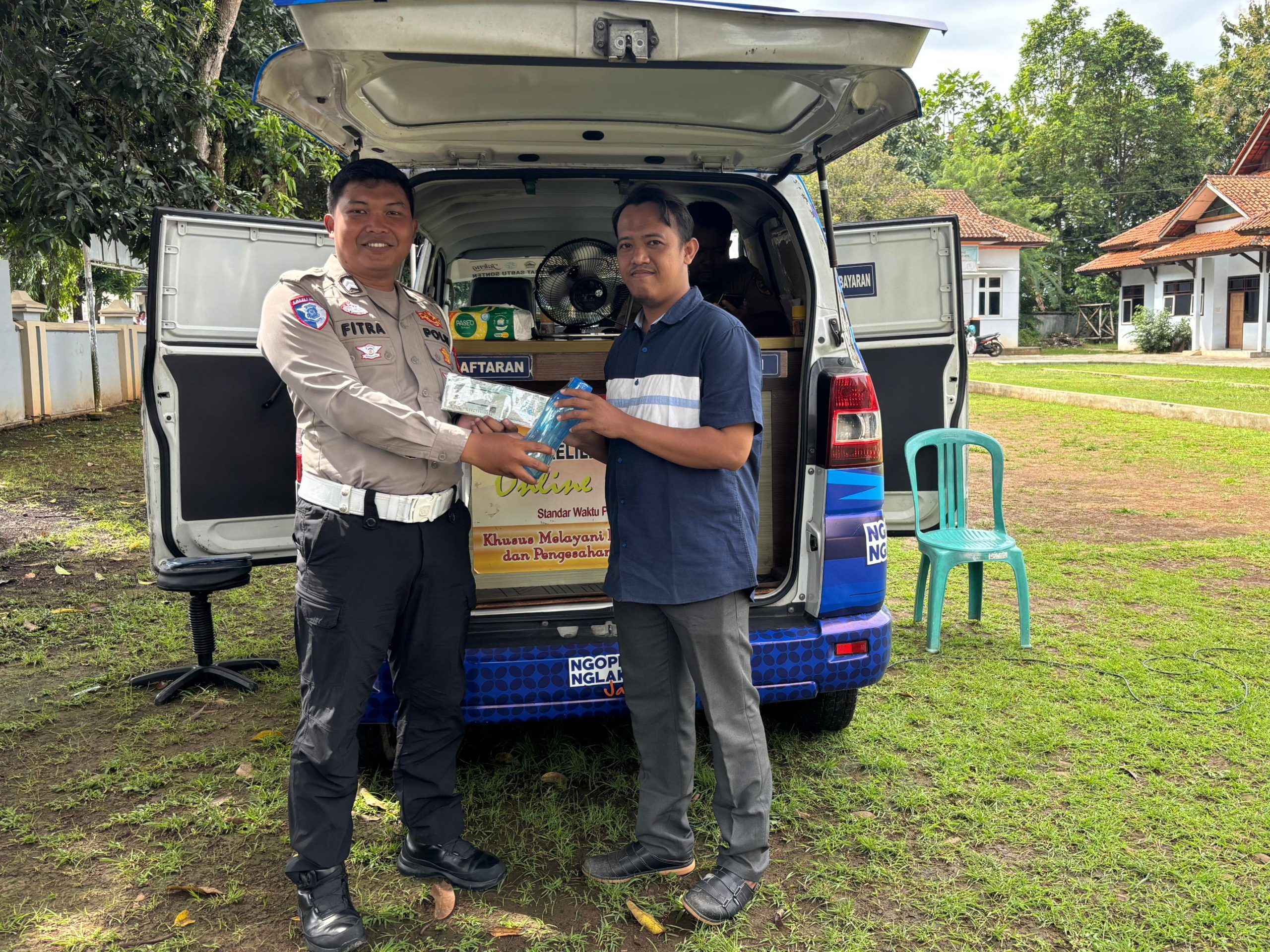 KORLANTAS POLRI, Pekalongan – Satlantas Polres Pekalongan kembali memberikan apresiasi kepada masyarakat taat pajak. Apresiasi diberikan melalui layanan Samsat Keliling yang digelar di sejumlah titik. Wajib pajak yang membayar pajak kendaraan bermotor mendapat bonus tumbler secara gratis.