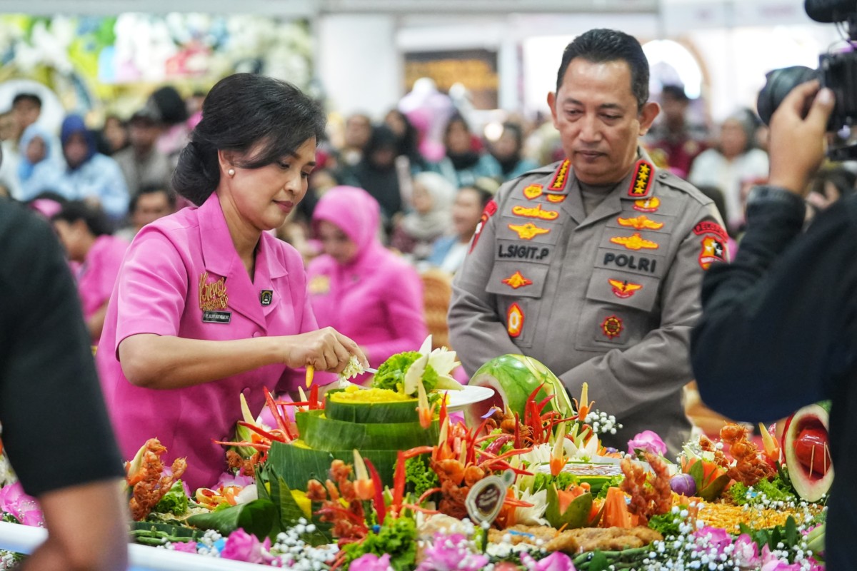 Kemudian, Jenderal Sigit mendampingi Ny Juliati memotong tumpeng sekaligus kue ulang tahun dan diiringi lagu Selamat Ulang Tahun.