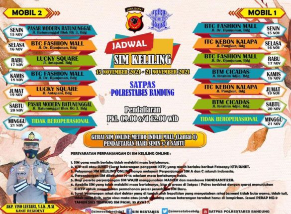 Demikian informasi pelayanan SIM Keliling Polrestabes Bandung semoga bermanfaat.