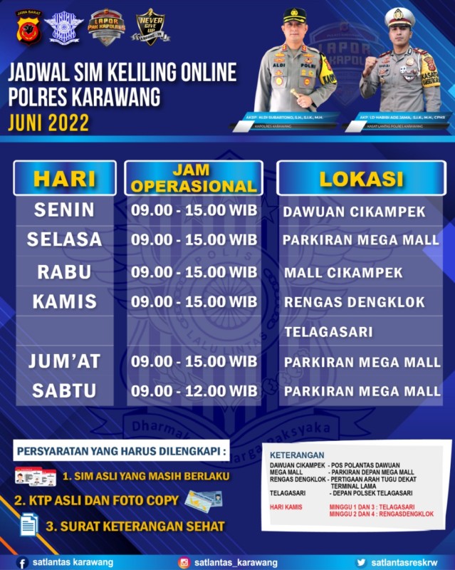 Demikian informasi pelayanan SIM Keliling Polres Karawang semoga bermanfaat.