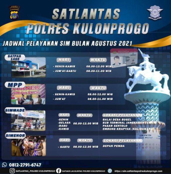 Demikian informasi pelayanan SIM Keliling Polres Kulonprogo semoga bermanfaat.
