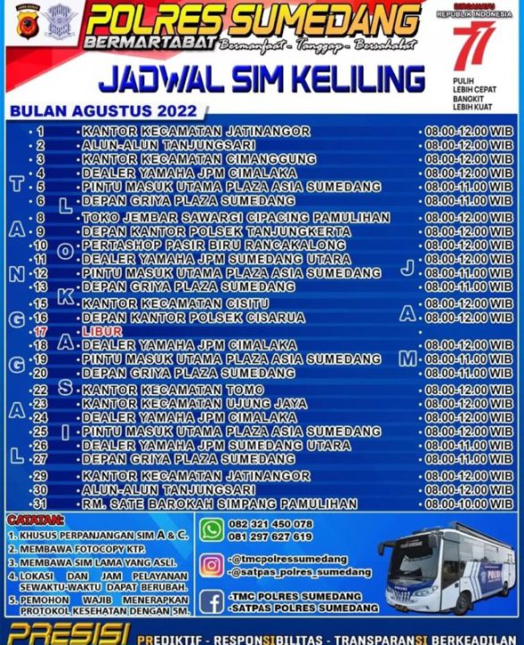 Demikian informasi pelayanan SIM Keliling Polres Sumedang semoga bermanfaat.