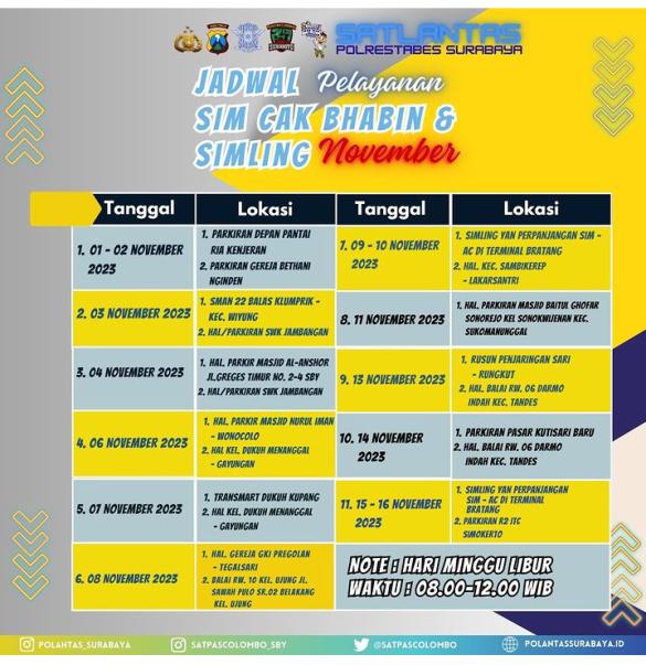 Demikian informasi pelayanan SIM Keliling Polrestabes Surabaya semoga bermanfaat.