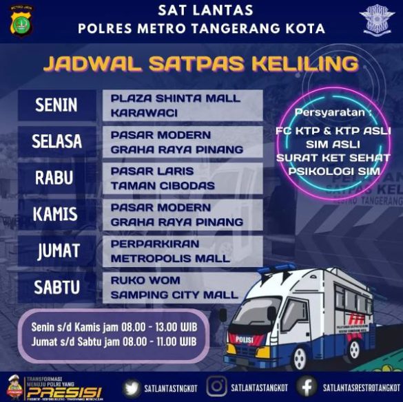 Demikian informasi pelayanan SIM Keliling Polres Metro Tangerang Kota semoga bermanfaat.