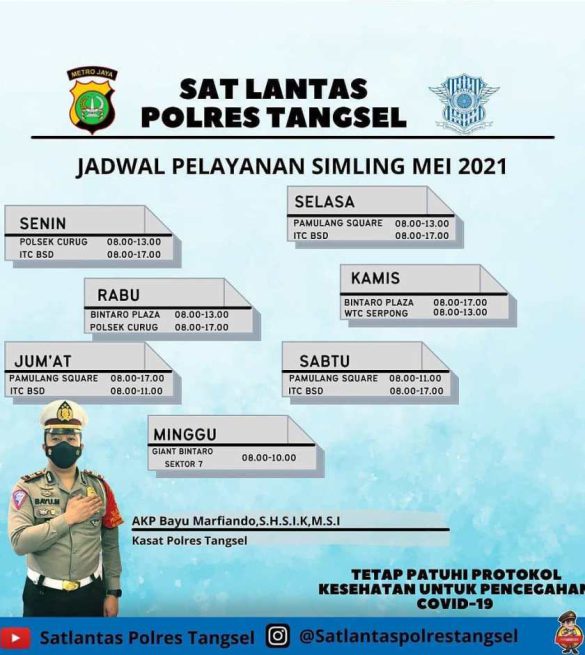 KORLANTAS POLRI – Ditengah mewabahnya Covid-19, bagi anda warga Tangerang Selatan (Tangsel) yang ingin melakukan perpanjangan SIM anda dapat melakukan perpanjangan di SIM Keliling Polres Tangsel.