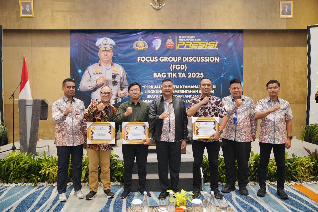 KORLANTAS POLRI, Jakarta – Ancaman siber terhadap sistem pemerintahan Indonesia kian kompleks dan masif. Hal ini mengemuka dalam Focus Group Discussion (FGD) yang digelar oleh Bagian Teknologi Informasi dan Komunikasi (TIK) Korlantas Polri di Hotel Harris Kelapa Gading, Jakarta (7/8/2025). Mengusung tema “Perkuatan Sistem Keamanan Siber di Lingkungan Pemerintahan”, diskusi ini dihadiri oleh perwakilan dari Ditsiber Bareskrim Polri, BSSN, dan Kementerian Komunikasi dan Digital (Komdigi).