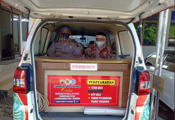 KORLANTAS POLRI – Pembayaran pajak kendaraan bermotor melalui Drive Thru yang berada di Jalan Imam Bonjol, Kelurahan Madras Hulu, Kecamatan Medan Polonia, Kota Medan beroperasi.