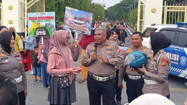 Agar lebih menarik, acara dikemas dengan kuis berhadiah. Ditlantas Polda Riau juga membagikan helm SNI, tumbler, hingga bibit pohon kepada masyarakat yang hadir.