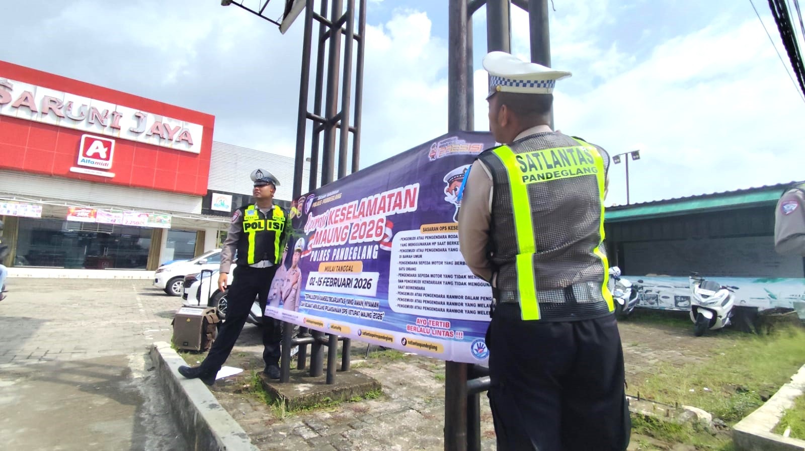 Spanduk Operasi Keselamatan 2026 dipasang di lokasi-lokasi yang dinilai memiliki tingkat aktivitas lalu lintas tinggi, seperti persimpangan jalan, kawasan pusat keramaian, serta jalur utama yang sering dilalui oleh pengguna jalan.
