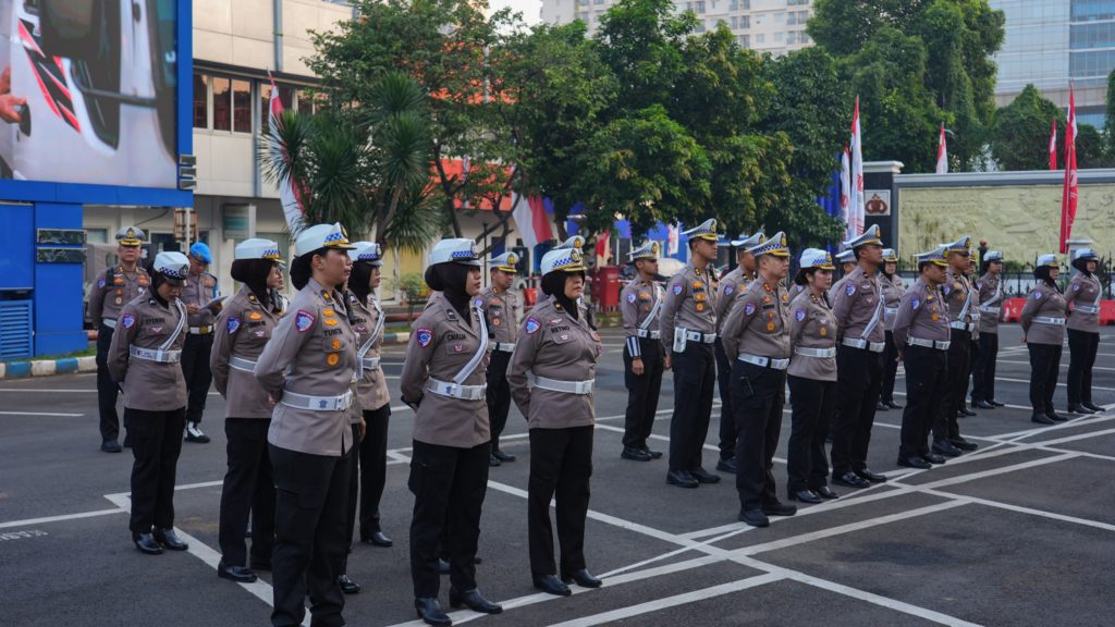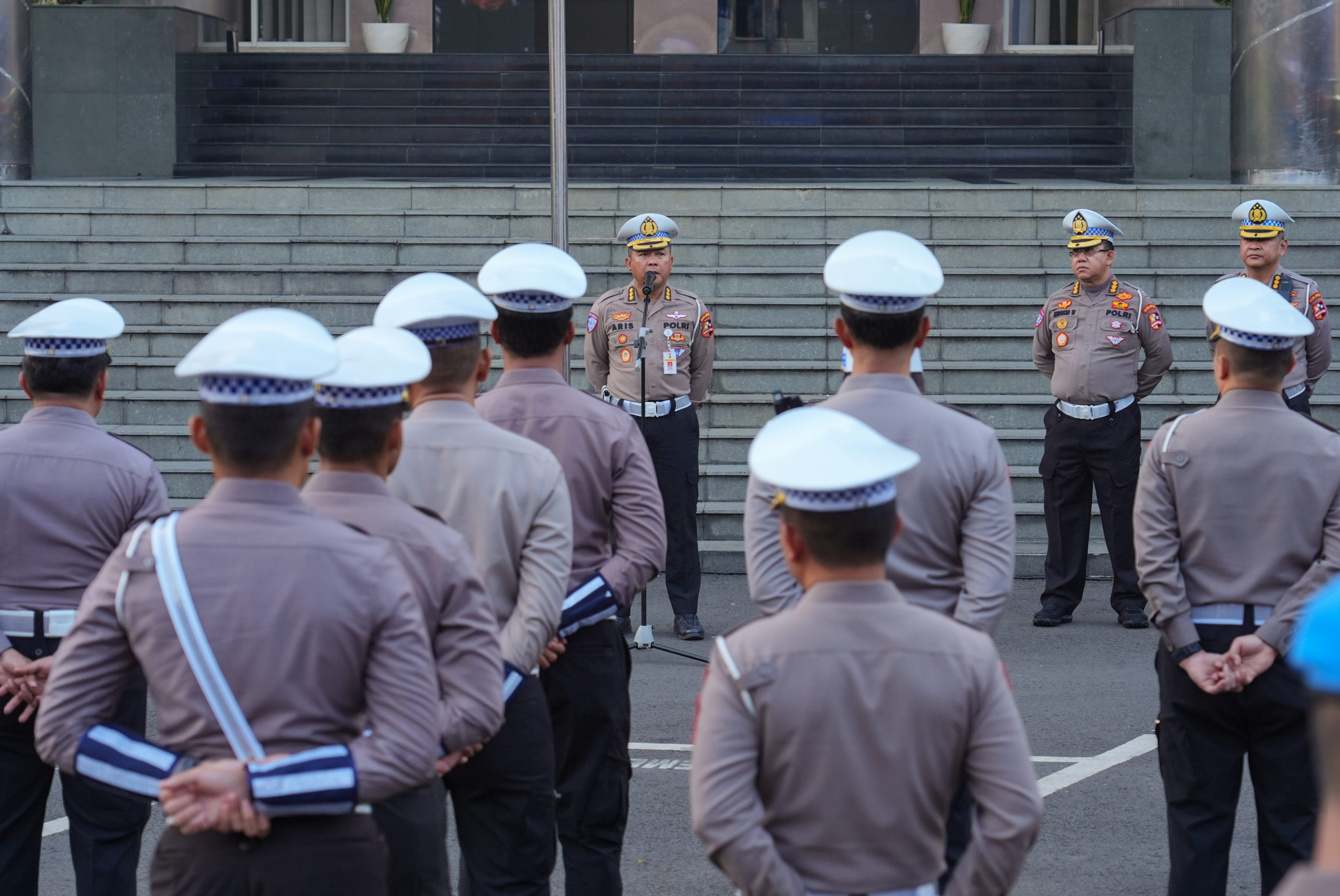 KORLANTAS POLRI, Jakarta – Kabag Ops Korlantas Polri Kombes Pol Aries memimpin apel pagi personel Korlantas Polri di lapangan NTMC Polri, Minggu (17/8). Dalam amanatnya ia menyampaikan sejumlah prioritas dan pengaturan arus lalu lintas selama berlangsungnya rangkaian peringatan HUT Kemerdekaan Republik Indonesia ke-80.
