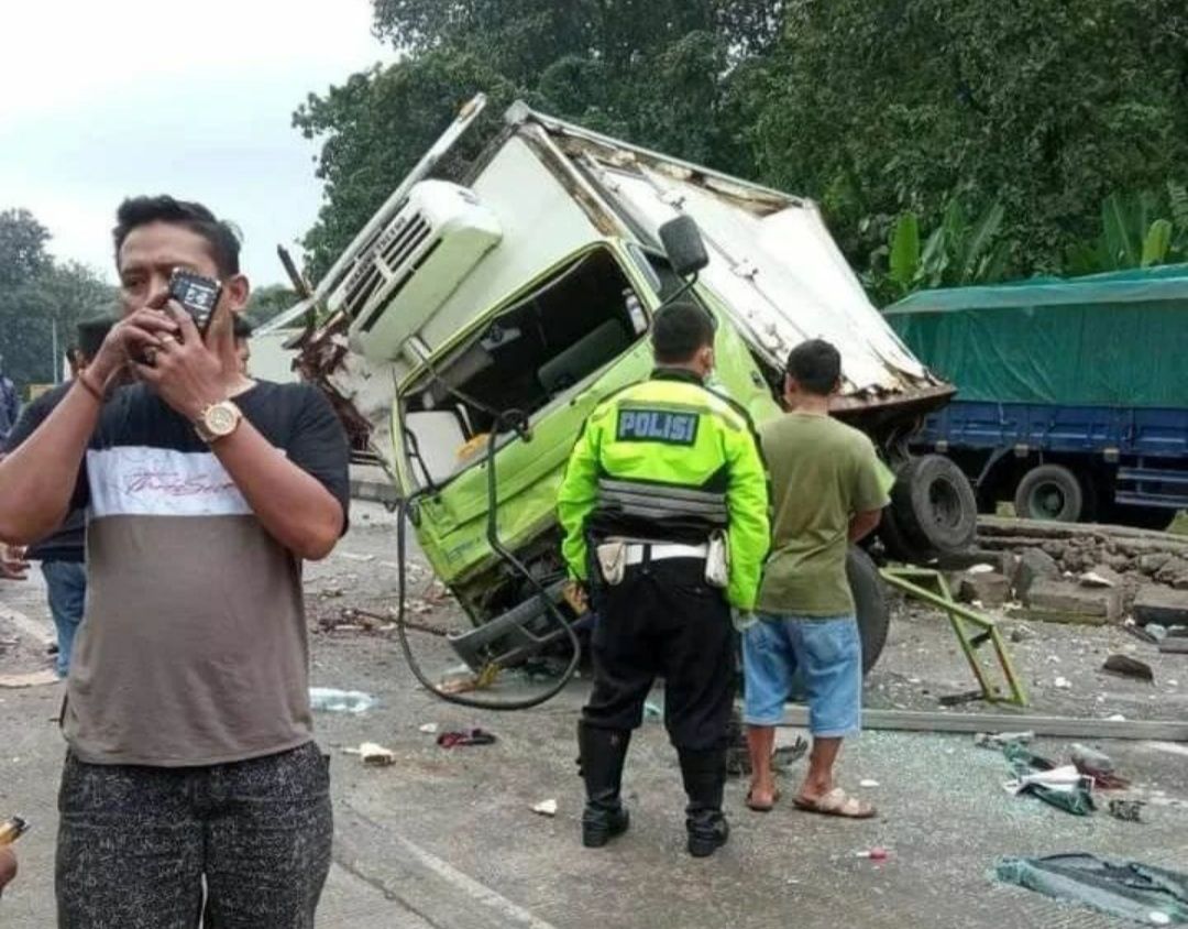 Berdasarkan informasi, Kronologi truk trailer bermuatan besi dari arah barat mengalami rem blong dan menabrak 1 truk box bermuatan beras didepannya. Box beras keluar median jalan menghantam truk box dari arah timur, sementara truk trailer yang mengalami rem blong tetap melaju dan menghantam truk box lain dari arah timur.