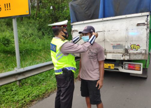 Selain memantau kondisi arus lalulintas di ruas jalan tol, petugas PJR Tol Cipularang membagikan sejumlah masker kepada pengendara.