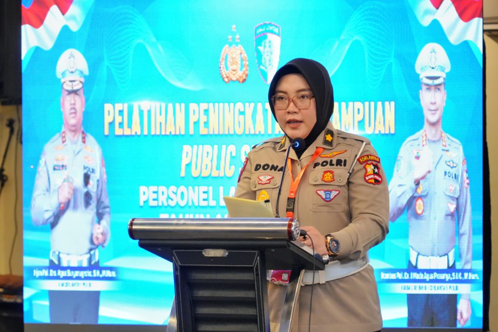 “Kami dari Korlantas Polri menyelenggarakan kegiatan peningkatan kemampuan bagi personel lalu lintas di bidang public speaking tahun 2025. Kegiatan ini bertujuan untuk memberikan edukasi juga memperkuat skill anggota lalu lintas, personel di lapangan untuk menguasai keterampilan dalam bidang komunikasi, khususnya di public speaking,” kata Kompol Dona.