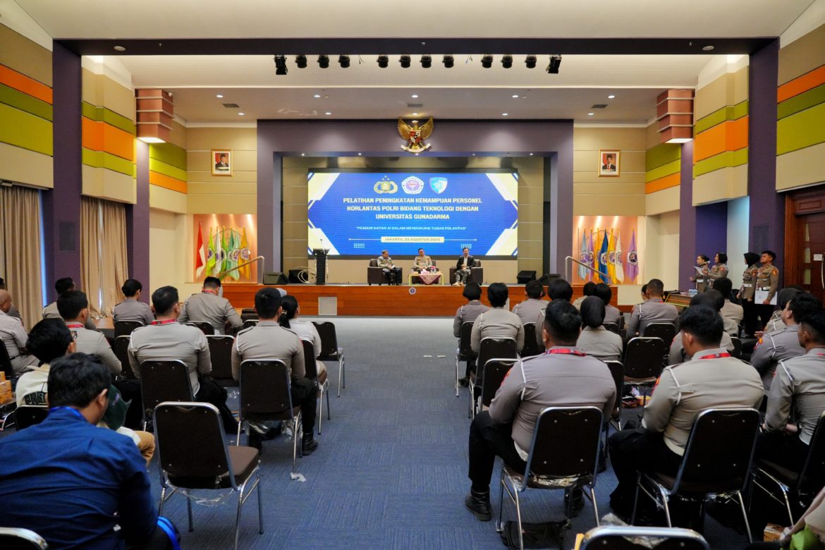 KORLANTAS POLRI, Bekasi – Korps Lalu Lintas (Korlantas) Polri melaksanakan kegiatan pelatihan peningkatan kemampuan personel Korlantas Polri bidang teknologi dengan Universitas Gunadarma, dalam rangka pemanfaatan Artificial Intelligence mendukung tugas Polantas, Senin (25/8).
