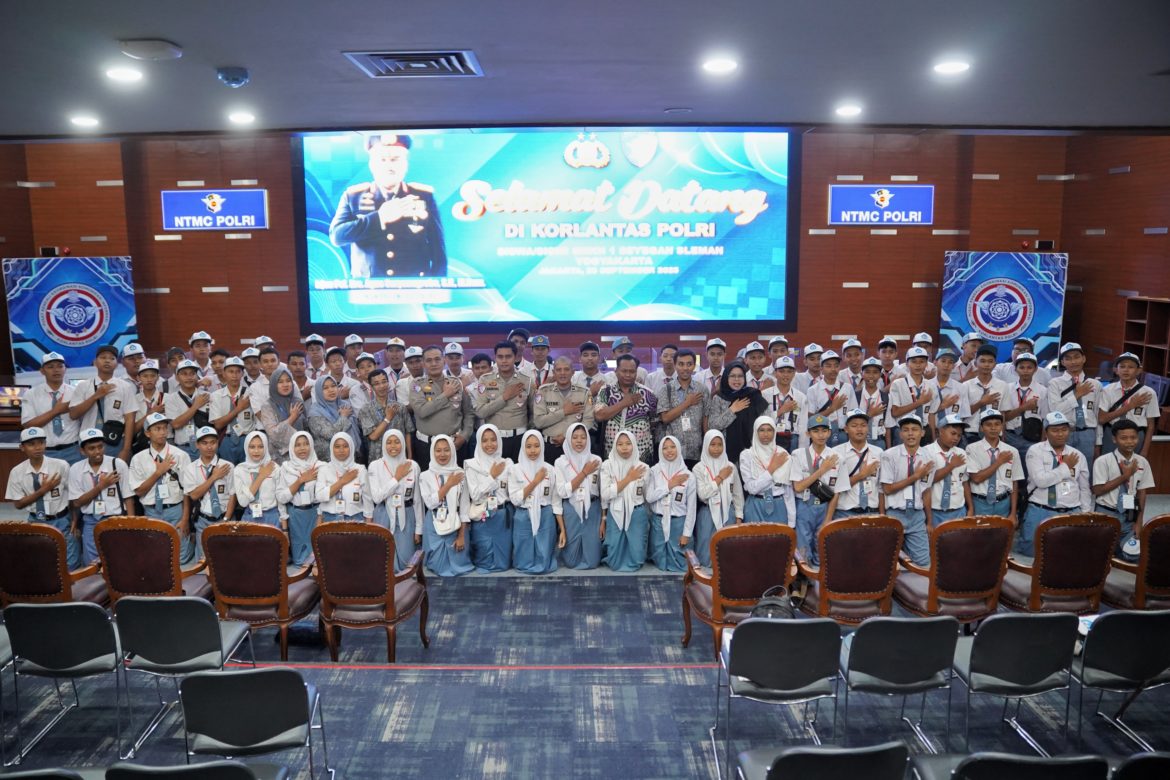 KORLANTAS POLRI, Jakarta – Korps Lalu Lintas (Korlantas) Polri menerima kunjungan dari Siswa dan Siswi SMKN 1 Seyegan Sleman Yogyakarta yang disambut langsung oleh Kepala Unit (Kanit) NTMC Regu 2 Ipda Imam Agus Sulostyo, di Gedung NTMC Polri, Selasa (23/9).