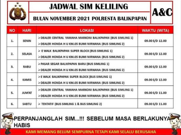 Demikian informasi pelayanan SIM Keliling Polresta Balikpapan semoga bermanfaat.