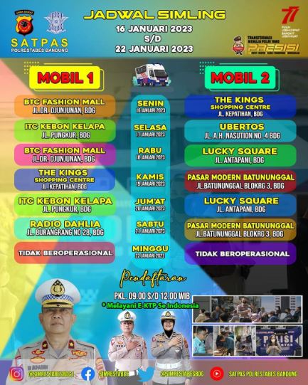 Home SIM / STNK Keliling Lokasi Layanan SIM Keliling Bandung 17 Januari 2023