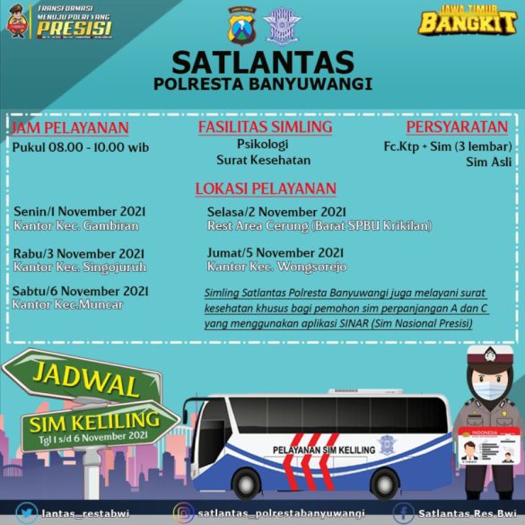 Demikian informasi pelayanan SIM Keliling Polresta Banyuwangi semoga bermanfaat.