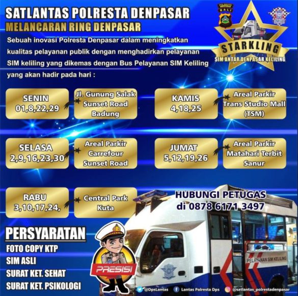 Demikian informasi pelayanan SIM Keliling Polresta Denpasar semoga bermanfaat.