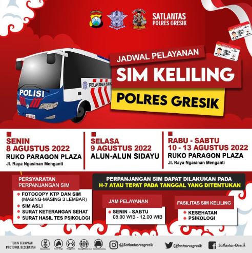 Demikian informasi pelayanan SIM Keliling Polres Gresik semoga bermanfaat.