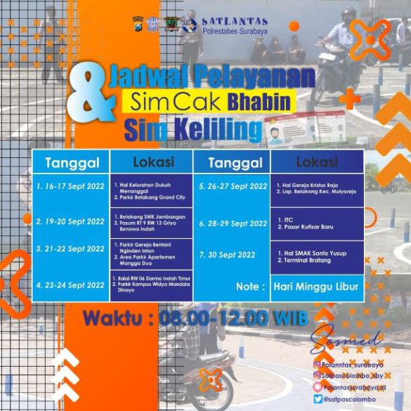 Demikian informasi pelayanan SIM Keliling Polrestabes Surabaya semoga bermanfaat.