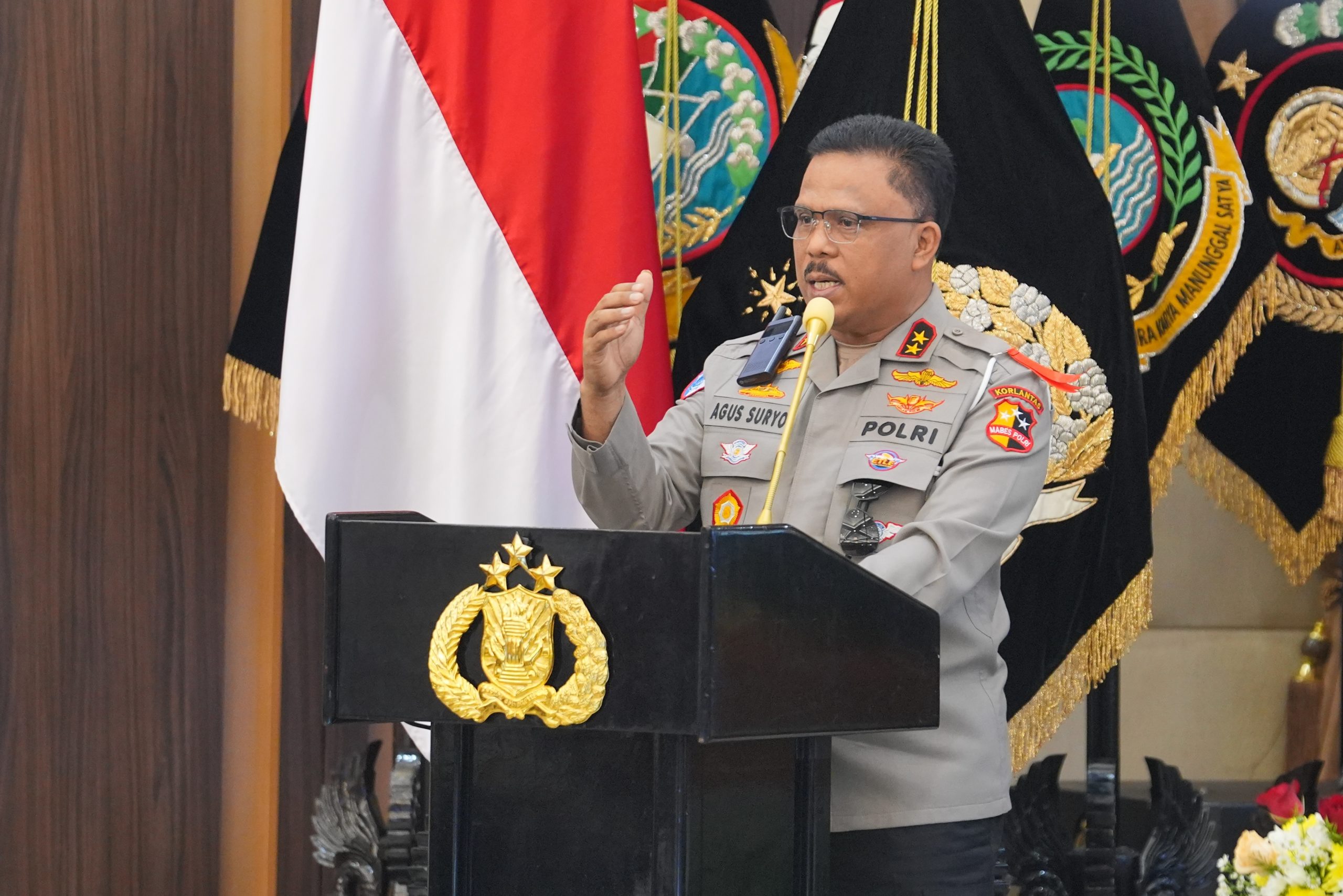 KORLANTAS POLRI, Jakarta – Kepala Korps Lalu Lintas (Kakorlantas) Polri Irjen Pol Drs. Agus Suryonugroho, S.H., M.Hum., menghadiri Rilis Akhir Tahun 2025 Kepolisian Negara Republik Indonesia yang mengusung tema “Polri Untuk Masyarakat”. Kegiatan dipimpin langsung oleh Kapolri Jenderal Polisi Listyo Sigit Prabowo, Selasa (30/12).