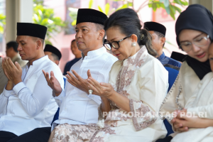 Ketua Bhayangkari Cabang BS Korlantas Polri Ny. Dewi Aan Suhanan turut mendampingi Kakorlantas dalam momen perayaan Idul Adha, Senin (17/6).