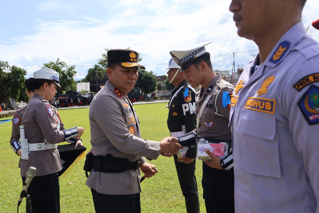 KORLANTAS POLRI, Manado – Kapolda Sulawesi Utara (Sulut) Irjen Pol Roycke Harry Langie memimpin Apel Gelar Pasukan Operasi Kepolisian Kewilayahan “Zebra Samrat-2025”, Senin (17/11) pagi, di lapangan upacara Mapolda Sulut. Apel diikuti personel Polri, TNI, Dinas Perhubungan, Sat Pol PP, Dispenda, dan Jasa Raharja.