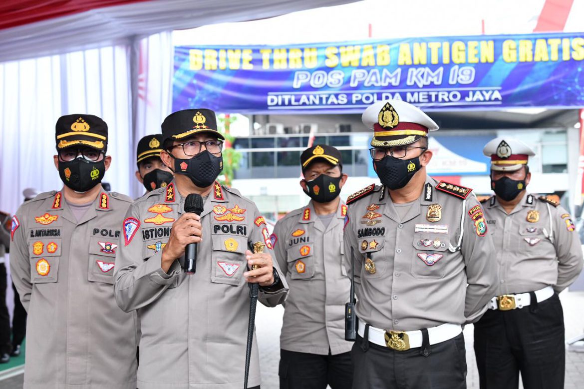 Kakorlantas juga menambahkan, Polda Metro Jaya bersama jajaran Polda Jabar dan Jateng terus menggelar drive thru swab antigen gratis hingga ke perbatasan kota dan desa.