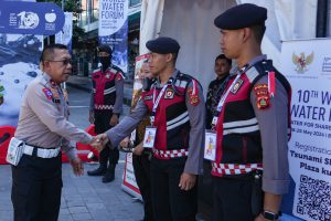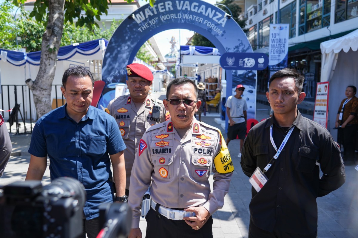 KORLANTAS POLRI, Bali. Kasatgas Walrolakir Operasi Puri Agung 2024 Brigjen Pol. Raden Slamet Santoso melakukan pengecekan kesiapan side event di Pasar Seni yang menjadi lokasi pameran dagang dengan menampilkan beragam produk UMKM lokal pada rangkaian kegiatan KTT World Water Forum ke-10.