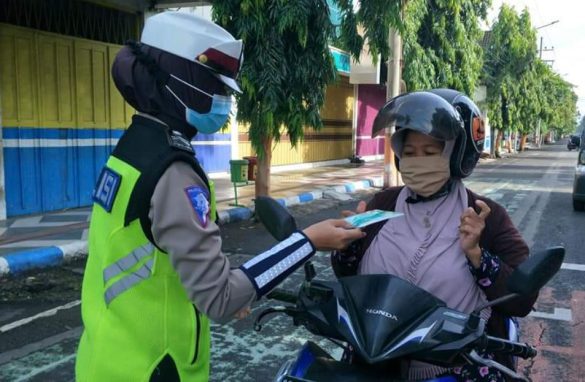 KORLANTAS POLRI – Jajaran Satlantas Polres Jember memberikan ‘kado’ kepada ibu-ibu pekerja dalam rangka memperingati hari ibu pada tanggal 22 Desember 2020. Kado itu berupa masker, handsanitizer dan juga imbauan agar selalu taat berlalu lintas.