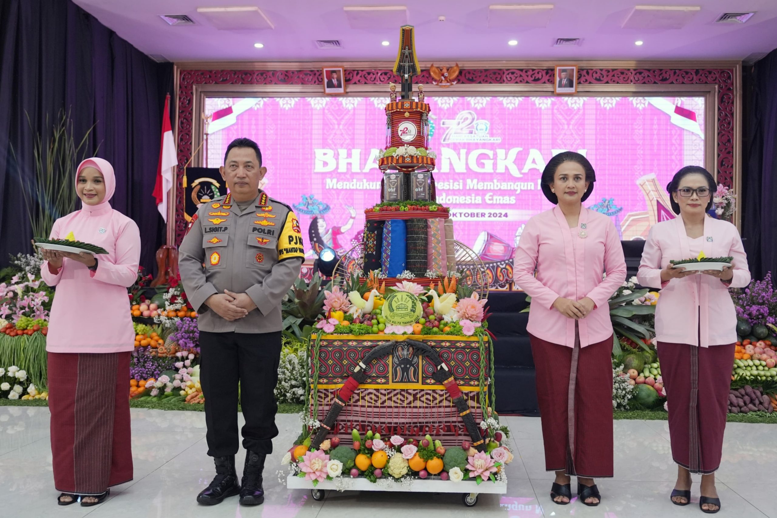 Selain itu, Ketua Umum Bhayangkari Ny Juliati Sigit Prabowo mengatakan bahwa berbagai dinamika telah dilalui oleh insan Bhayangkari sejak berdirinya pada 72 tahun yang lalu, sehingga untuk memperingati momen ini, ia ingin mengajak seluruh anggota Bhayangkari untuk melangkah lebih maju.