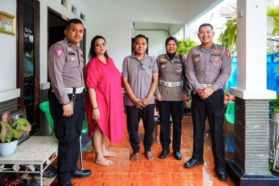 KORLANTAS POLRI, Bekasi. Korps Lalu Lintas (Korlantas) Polri menggelar kegiatan anjangsana dalam rangka Hari Ulang Tahun (HUT) Korlantas ke-69 di kediaman Aiptu Wayan di Pondok Gede, Bekasi, Jawa Barat.