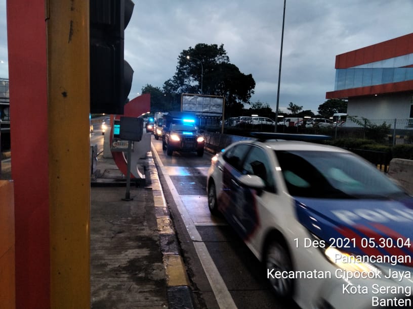 Dirlantas Polda Banten Kombes Pol Rudy Purnomo menyampaikan truk box yang membawa vaksin Covid-19 mendapat pengawalan ketat dari kendaraan Patroli Denwal PJR Korlantas Polri dan Rantis Brimob Mabes Polri kemudian lintas ganti di gate Serang Timur dengan kendaraan Patroli PJR Ditlantas Polda Banten dengan tujuan ke Gudang Farmasi Provinsi Banten di Jl. Syeh Nawawi Al Bantani.