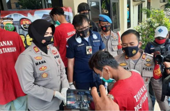 Petugas melakukan penangkapan terhadap tiga orang pelaku di tempat persembunyiannya, namun pelaku Midun berhasil melarikan diri atau tidak ada di lokasi penangkapan di sebuah rumah kontrakan.