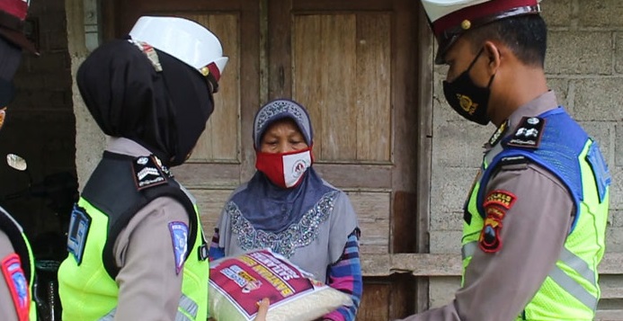 Sembako-sembako yang dibagikan merupakan hasil uluran tangan personel Sat Lantas Polres Kebumen melalui program ‘Senin Sedekah’. “Sembako yang dibagikan adalah hasil sedekah personel Sat Lantas dalam kegiatan ‘Senin Sedekah’,” jelas AKP Tugiman.