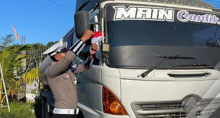 KORLANTAS POLRI, Kutai Barat – Menyambut HUT ke-80 Kemerdekaan RI, Satlantas Polres Kutai Barat menggelar aksi simpatik bertajuk Polantas Menyapa Sopir Truk. Kegiatan ini digelar untuk mengajak para pengemudi truk dan masyarakat lebih peduli terhadap keselamatan berlalu lintas.