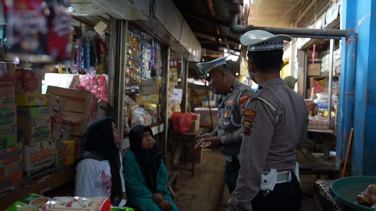 Salah satu kegiatan tersebut dilaksanakan melalui program Polantas Menyapa yang menyasar pedagang dan pengunjung Pasar Bangsri, Senin (8/12/2025). Petugas hadir di tengah keramaian untuk membangun komunikasi aktif dan menyampaikan pesan keselamatan.