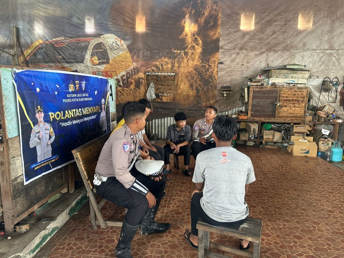 KORLANTAS POLRI, Kukar – Satlantas Polres Kutai Kartanegara (Kukar) kembali turun ke lapangan lewat program “Polantas Menyapa”. Kali ini, personel menyambangi karyawan Bengkel Sidomulyo di Tenggarong Seberang pada Selasa (11/11/2025) pagi. Kegiatan ini digelar untuk memperkuat kemitraan sekaligus mengingatkan pentingnya budaya tertib berlalu lintas.