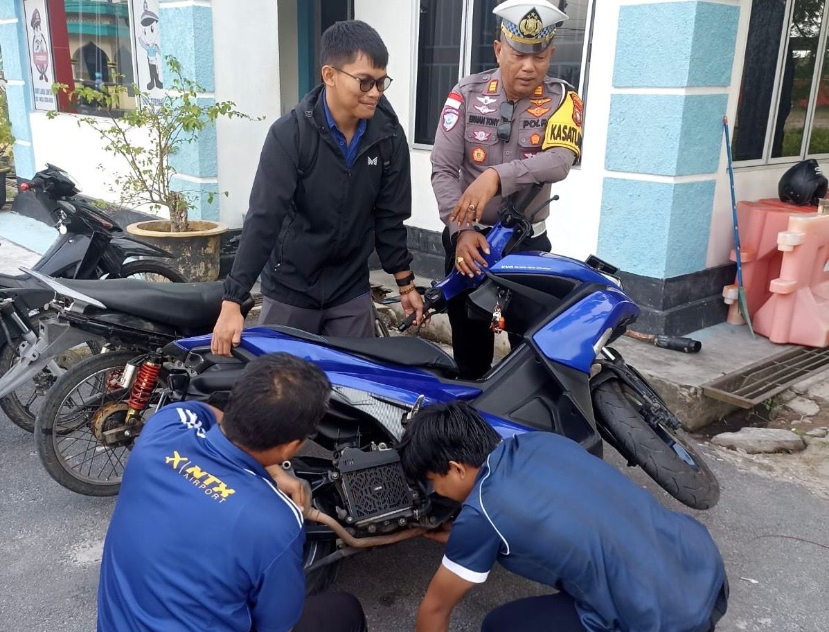 KORLANTAS POLRI, Natuna – Satlantas Polres Natuna melakukan penindakan langsung terhadap pengendara sepeda motor yang masih memakai knalpot brong. Petugas memerintahkan pengendara untuk mencopot knalpot brong dan menggantinya dengan knalpot standar pabrikan.