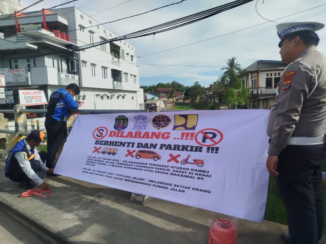 “Spanduk yang dipasang ini memuat dasar hukum terkait larangan parkir di badan jalan dan jembatan sesuai peraturan perundang-undangan yang berlaku,” jelasnya.