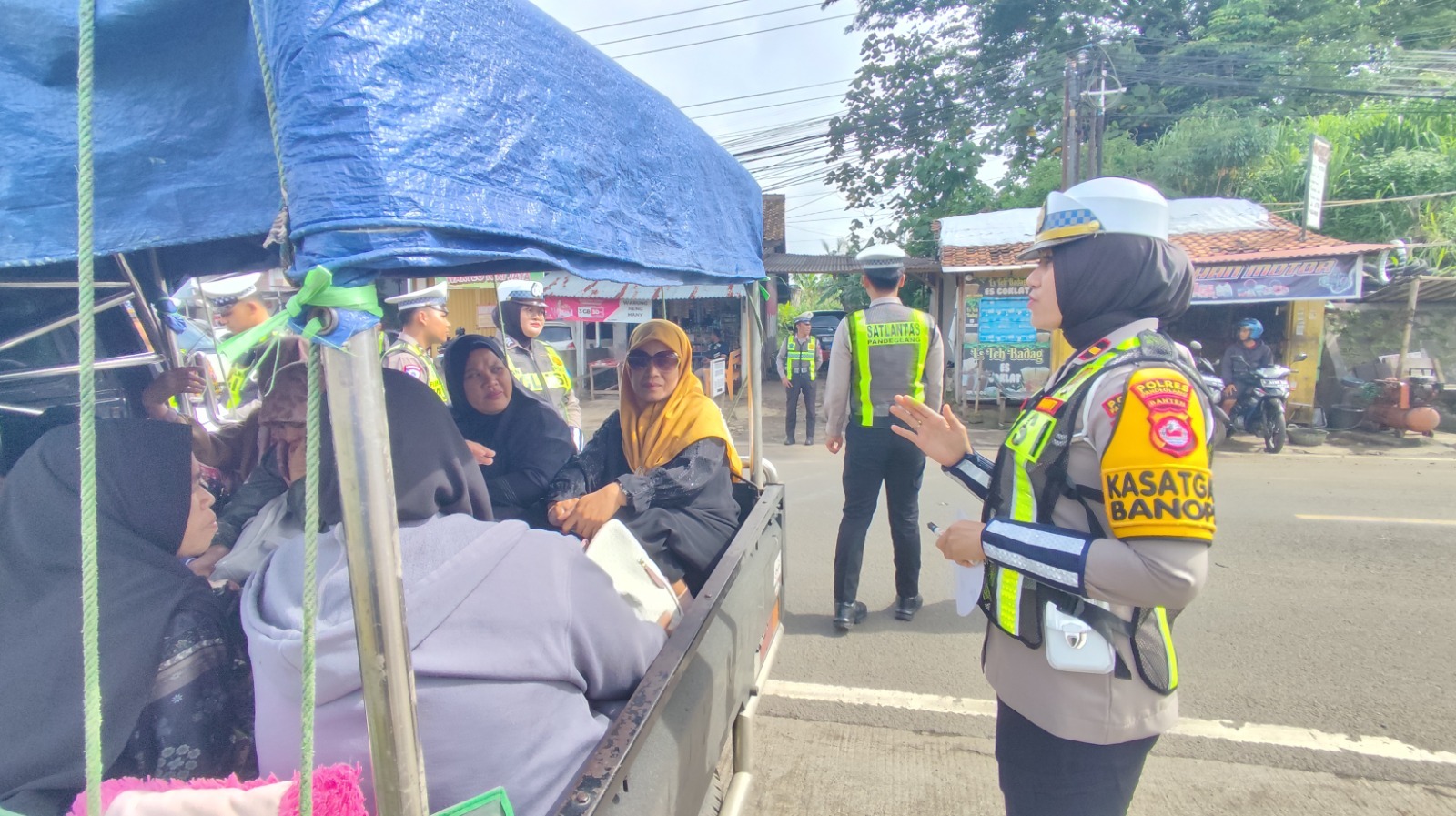 Dalam kegiatan tersebut, Kanit Kamsel Satlantas Polres Pandeglang, Ipda Fiat Justitia, turun langsung memberikan edukasi keselamatan berlalu lintas. Ia menyampaikan imbauan kepada penumpang yang berada di atas kendaraan jenis bak terbuka. Kendaraan tersebut tidak dirancang untuk mengangkut orang dan tidak memiliki standar keselamatan memadai.