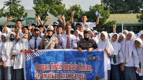 KORLANTASPOLRI – Kanit Keamanan dan Keselamatan (Kamsel) Satlantas Polres Bone, IPTU Melyana, hadir ditengah-tengah pelajar MAN 2 Bone..