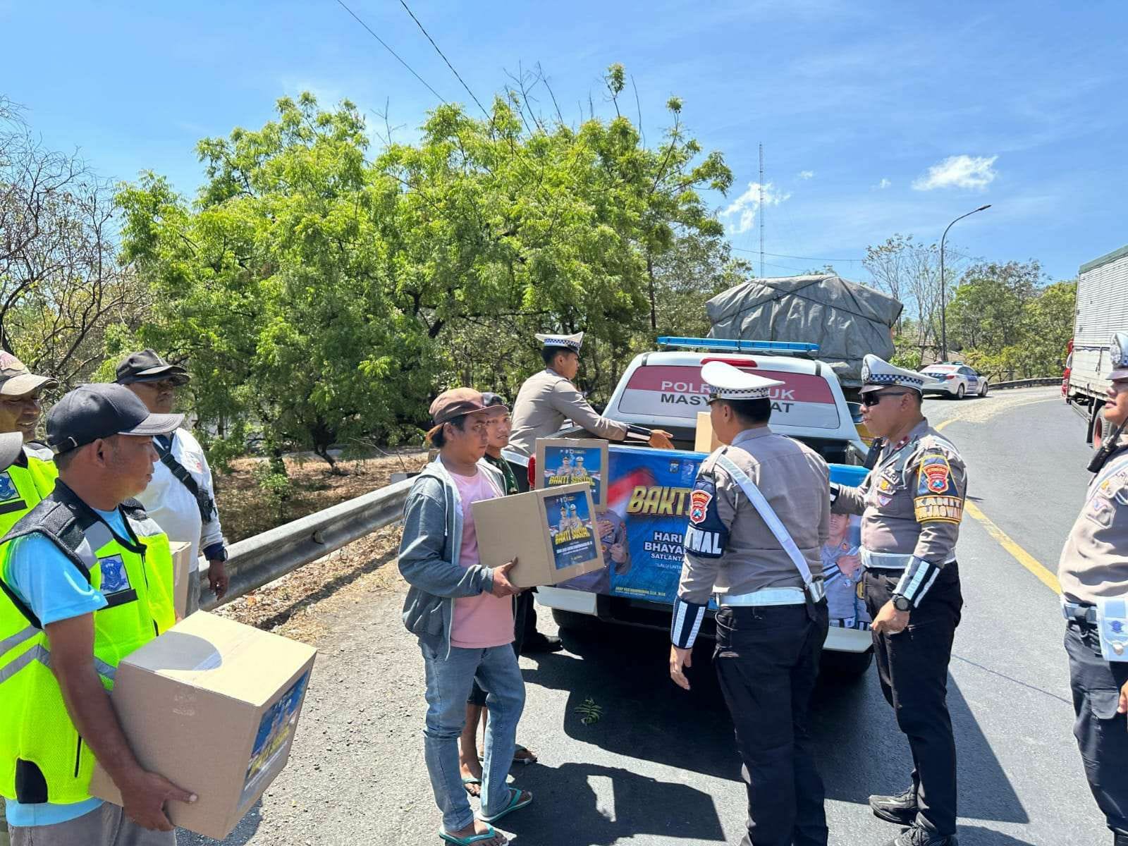 Kasat Lantas Polres Situbondo AKP Nanang Hendra Irawan mengatakan, pembagian sembako yang dilaksanakan juga dalam menyambuta Hari Ulang Tahun Lalu Lintas Bhayangkara ke-70.