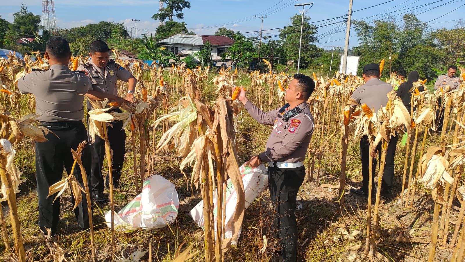 KORLANTAS POLRI, Tarakan – Kasat Lantas Polres Tarakan, AKP Rudika Harto Kanajiri bersama personel Satlantas Polres Tarakan melaksanakan kegiatan panen jagung hibrida yang berlokasi di Jalan Aki Pingka, Kelurahan Karang Harapan, Kota Tarakan.