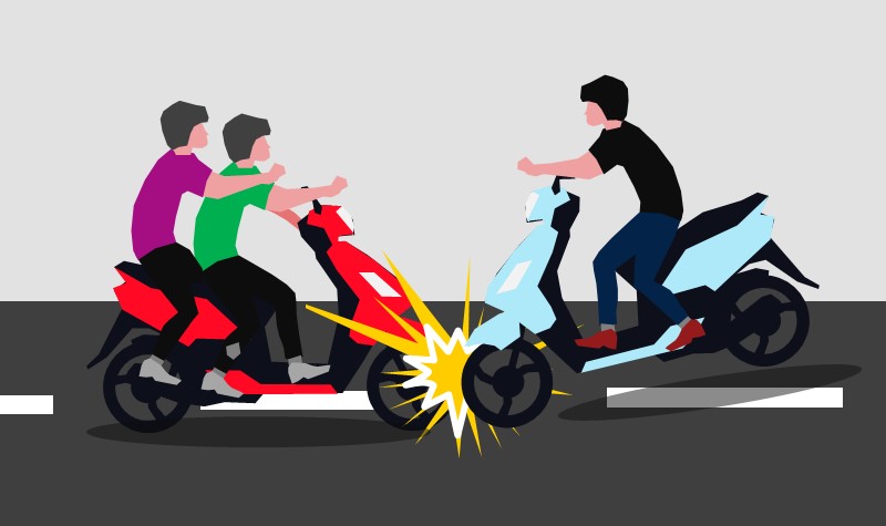 Dari peristiwa tabrakan itu kedua pengendara dan juga seorang penumpang terpental di atas badan jalan sebelah kanan.